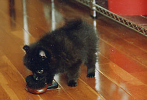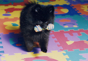 | ぴょんぴょんとびはなねるのが大好き。 まだ赤ちゃんなので足が折れないか心配で仕方ありませんでした。 首のうしろ少ーし白っぽくなってツキノワグマみたいですが、毛がのびたら目立たなくなりました。 | しでんくんの足へのしょうげきをかるくするためとすべるのをさけるためにフローリングにスポンジタイルをしきました。 これはフローリングのきず防止にもずいぶん役立っています。 ただおしゃれな新築のフローリングが子供べやのようになりましたけど。 | |||