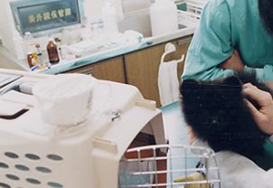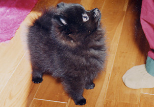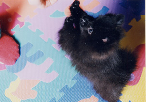 | 「おすわり」ができるようになりました。すごいぞ。でもこの写真をとるのは大変でした。なかなかじっとしていないんです。(今はずっと「まて」していますが) | 8種ワクチンを近所の病院でうちました。黒い物体がしでんくん。青いのが先生。私が抱いています。 左側のキャリーケージに入れて連れて行きました。しかし半日後とんでもないことに。詳しいことはワクチンのページを見てください。 | |||