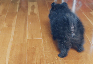 まだ毛が短いのでおしりが丸見えです。でも便が毛につかなくてとてもよいのです。成長してからもおしりのまわりは毛を切っています。うんちしたあと楽です。 | |||