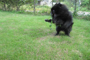 かなり悩んで、結局、365カレンダーにはこの写真でお願いしました。なんか、悩み疲れてお笑い路線に走ったというか、王道から外れた写真になりました。我々はこの写真、タイトル、「グリズリー」と呼んでいるのですが、よく見てもらうと、グリズリーのように後ろ足で立ち上がって、かかんにツユクサに立ち向かっていく、しでんくんの雄姿がわかってもらえると思います。というわけで、この写真は365カレンダー2011年版の9月16日に載っています。来年もやってみたいなあ。 |